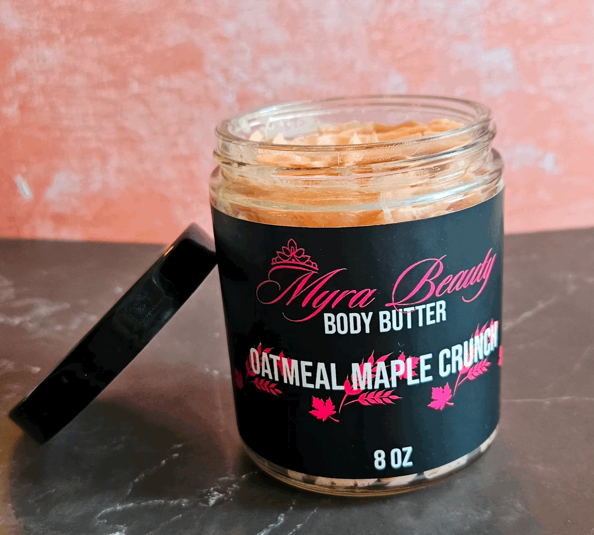 Our Oatmeal Maple Crunch Body Butter is a rich, creamy moisturizer that hydrates and softens your skin. With the warm scents of maple and oatmeal, it leaves your skin feeling smooth and smelling sweet. Perfect for daily use to keep your skin moisturized and soft.